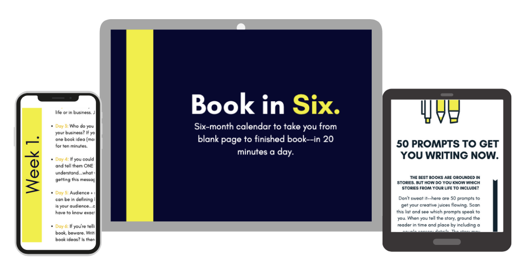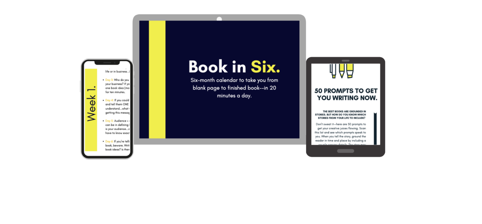 I’ve been writing books for the better part of a decade.I’ve coached dozens of aspiring authors to write the books of their hearts.I've helped clients land book deals with Big Five publishers.And I've seen it time and time again...People want to write books, but they don't know how to fit the job into their busy lives.They want to SEE how book-writing will fit on their calendar. Aspiring authors want a play-by-play that goes through each step of the process.If they just had that, these aspiring authors would have the confidence they need to plunge in.That's why I created Book in Six.When you purchase, you get an INSTANT win—the book-writing process at a glance, laid out before you in exacting detail.
