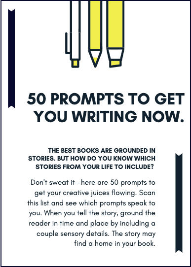 50 Prompts to Get You Writing Now will spur your creativity and help you identify your most resonant stories, some of which will find their way into your book.